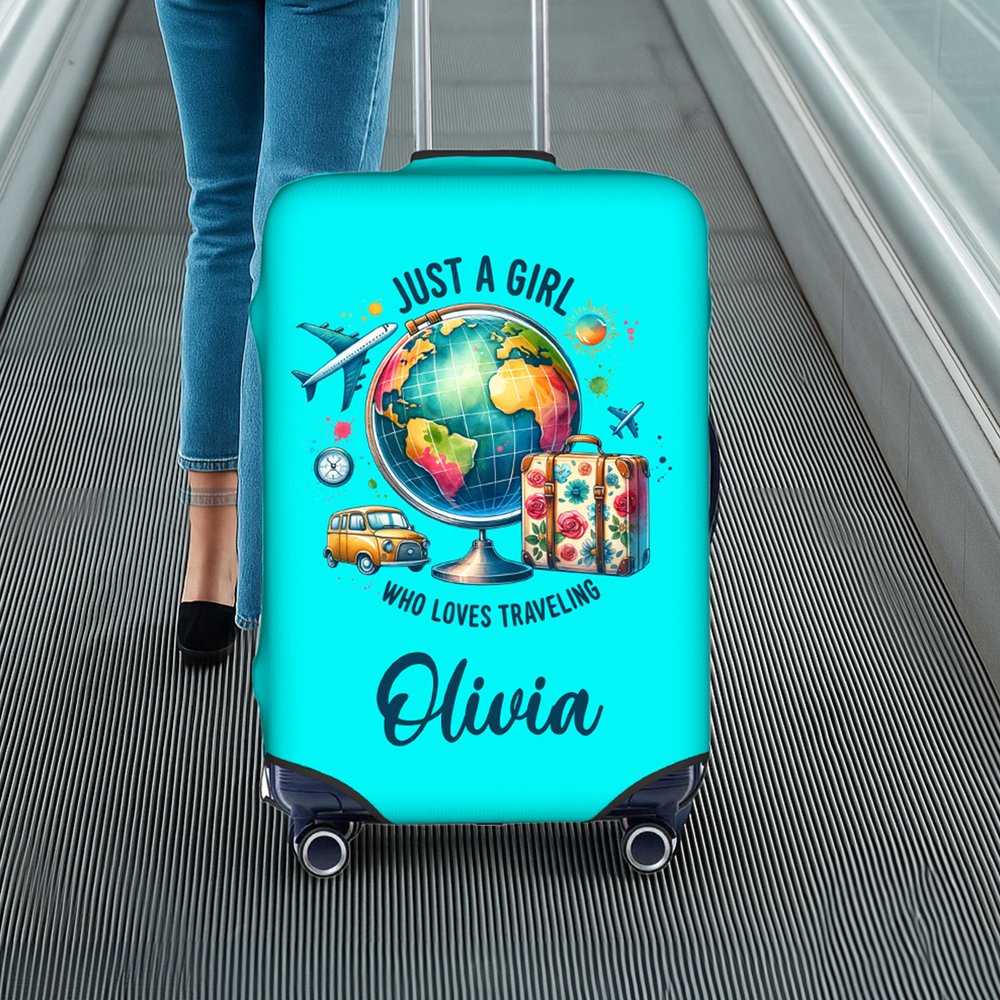 This luggage cover features a stunning earth graphic alongside the phrase "JUST A GIRL," embodying the boundless possibilities and adventurous spirit of travel. With customizable earth design options and personalized name selections, each user can showcase their unique style on their journeys, feeling a distinct sense of belonging as if every trip is a special exploration.