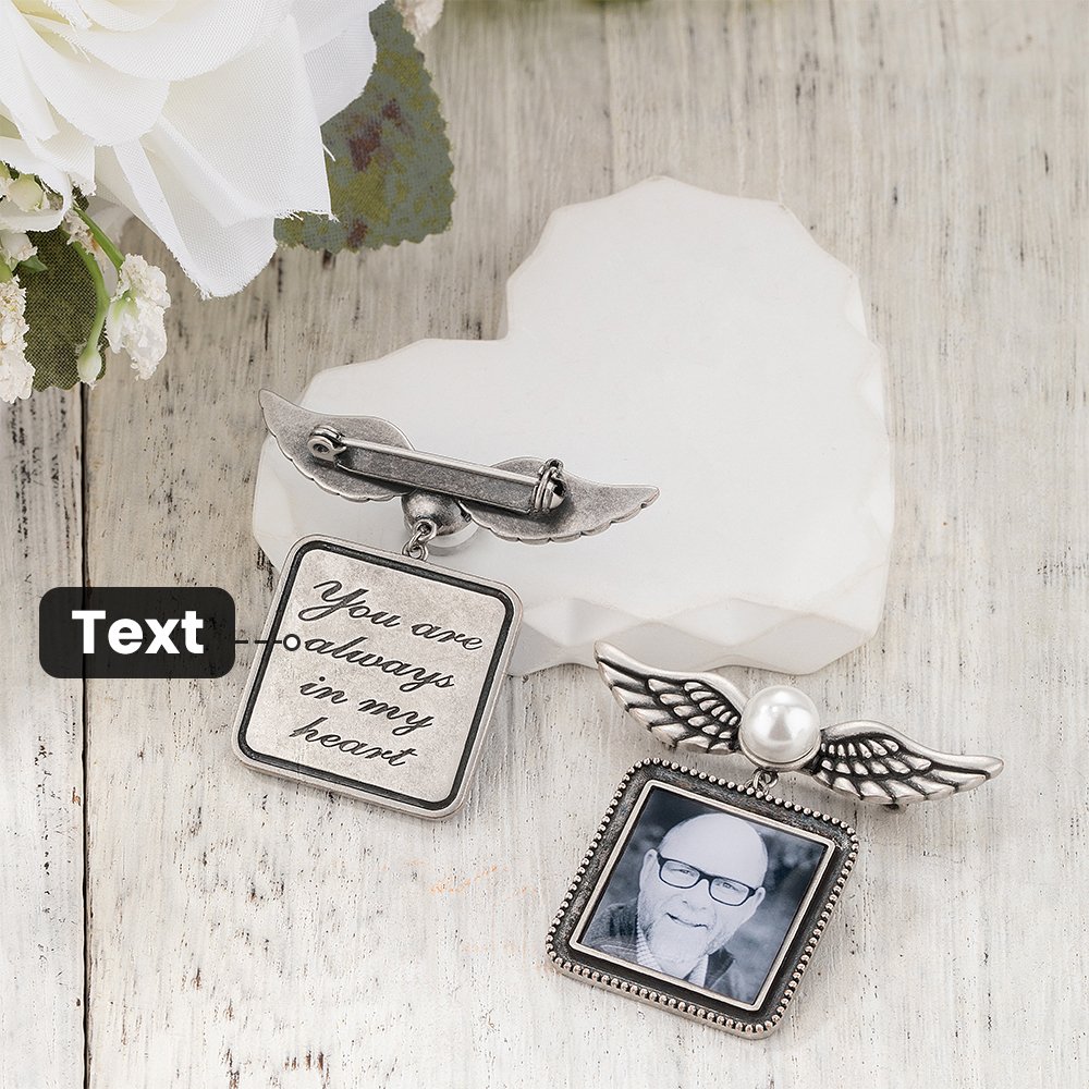 The overall product adopts old-fashioned craftsmanship, combined with metal and pearls, creating a romantic wedding atmosphere with exquisite texture. The design of the wing element symbolizes lightness and flight and is used to express the best wishes and memories of the deceased. Text can be engraved on the back of the product by laser engraving to express your unique emotion.