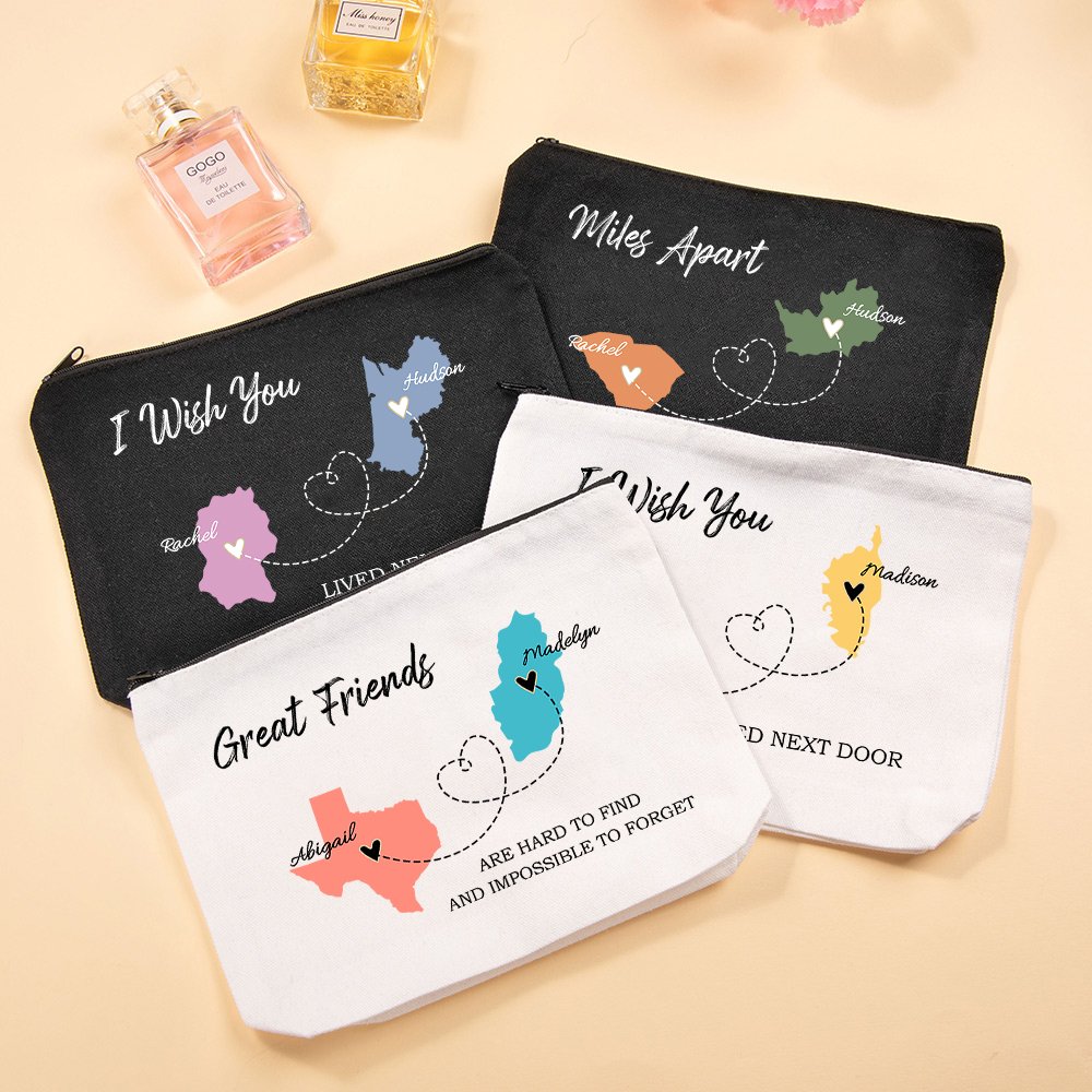 Designed with two maps of different states, connected by hearts and lines, it symbolizes the depth of our bond despite the distance. And you can choose from three heartwarming quotes - "Great friends are hard to find and impossible to forget," "Miles apart but close at heart," or "I wish you lived next door" - to make the gift even more meaningful.