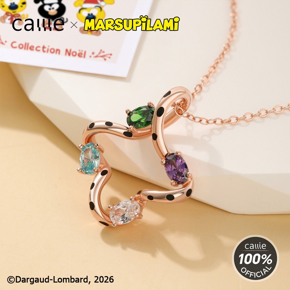 Created by Belgian cartoonist André Franquin in 1952, Marsupilami is a jungle-dwelling creature with yellow fur, black spots, and a super flexible, long tail. This necklace features the Marsupilami's signature long-tailed pattern as its central motif, artfully integrated with a Christmas wreath design. It also offers birthstone customization, transforming each piece into a unique work of art imbued with personal significance—perfectly capturing winter romance and festive cheer.