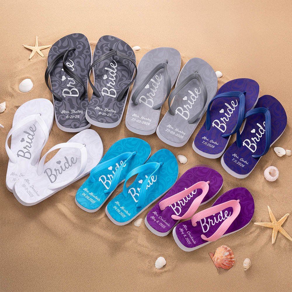 These customized bridal flip-flops carry the beautiful expectations of the newlyweds for love, making every moment more memorable. Whether it is a precious souvenir or a practical daily necessity, it can allow the bride to often recall the sweetness and happiness of the wedding in the future. It is the best choice for bridal showers and honeymoon gifts.