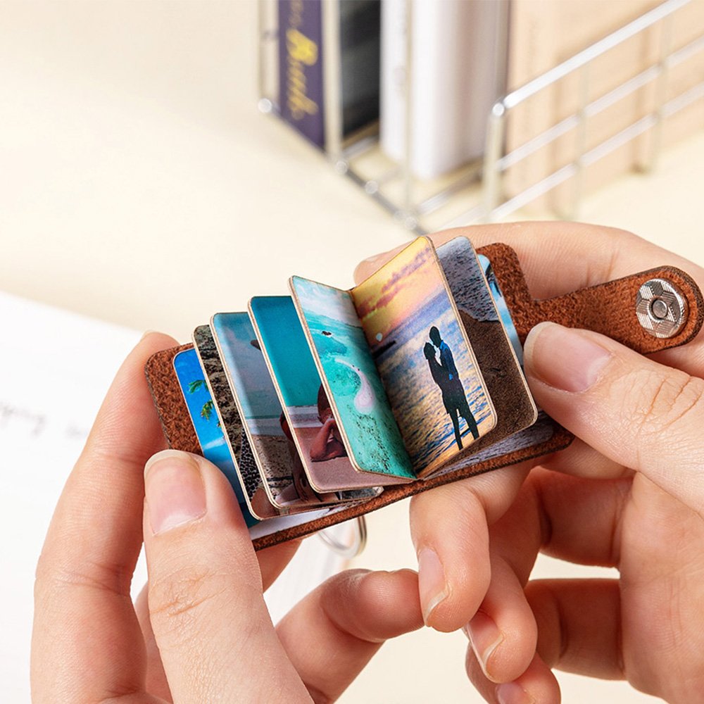 This keychain is designed to hold 10-14 of your favorite photos, which are printed on thick photo paper, then glued together and placed in an album. Allowing you to carry your most precious moments with you wherever you go. We offer 6 different leather colors to ensure the perfect match for your style. The back of the leather can be personalized with the engraving you desire.