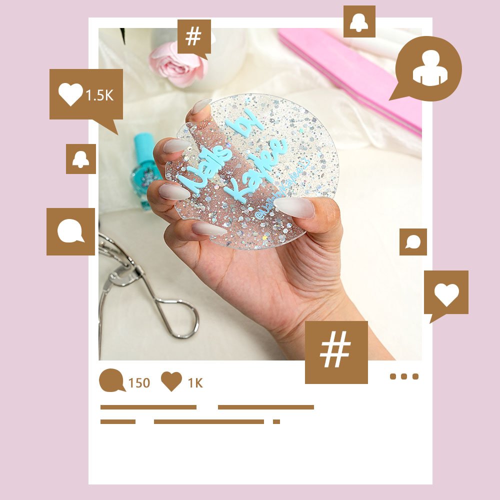 Our nail art disc is designed for nail salons and nail artists who want to show off their artistic style. You can customize the background color and text color, and choose to include sequins or glitter effects to create a colorful canvas for displaying nail art designs. You can also add text and social media accounts to make it a stunning promotional tool that shows your brand personality and style.