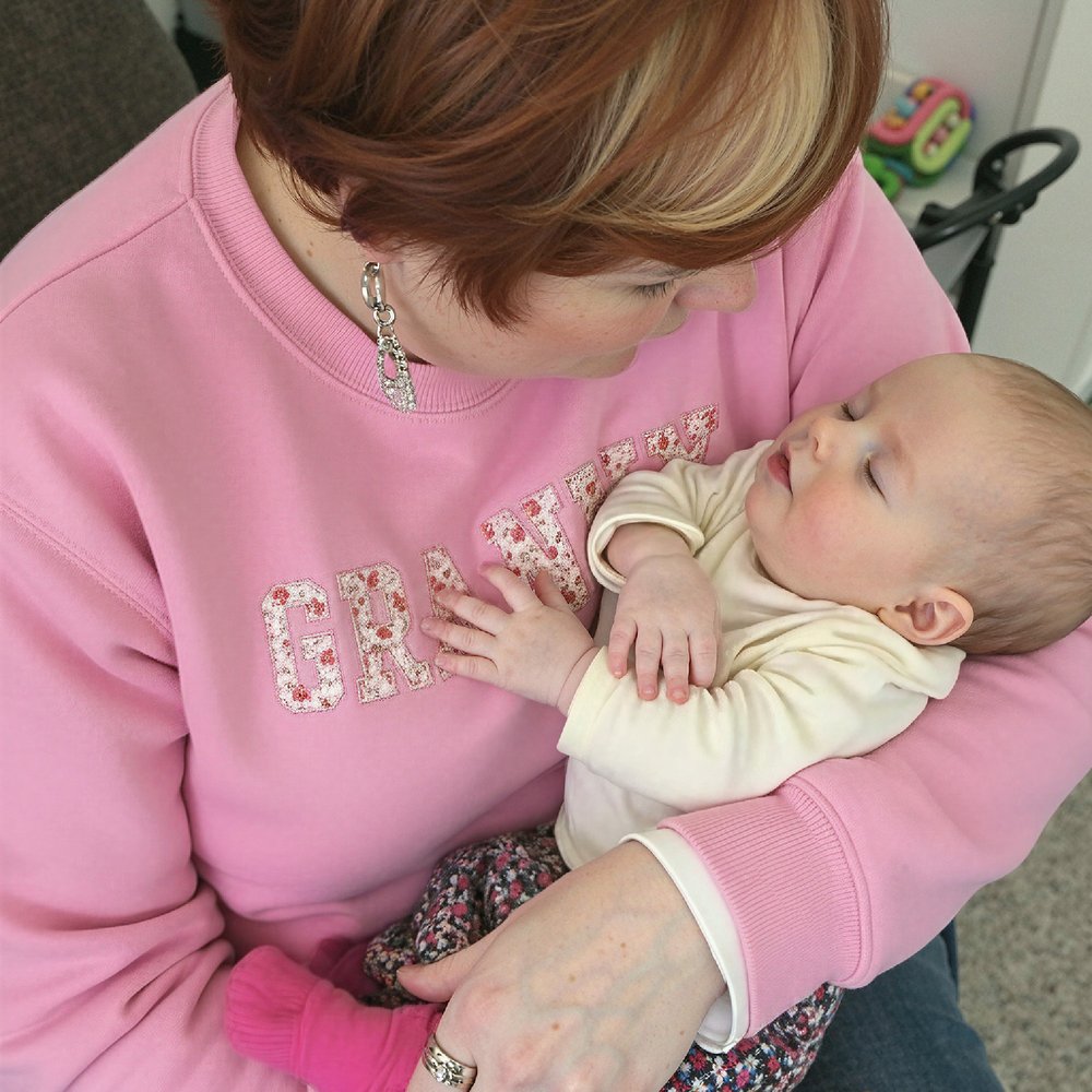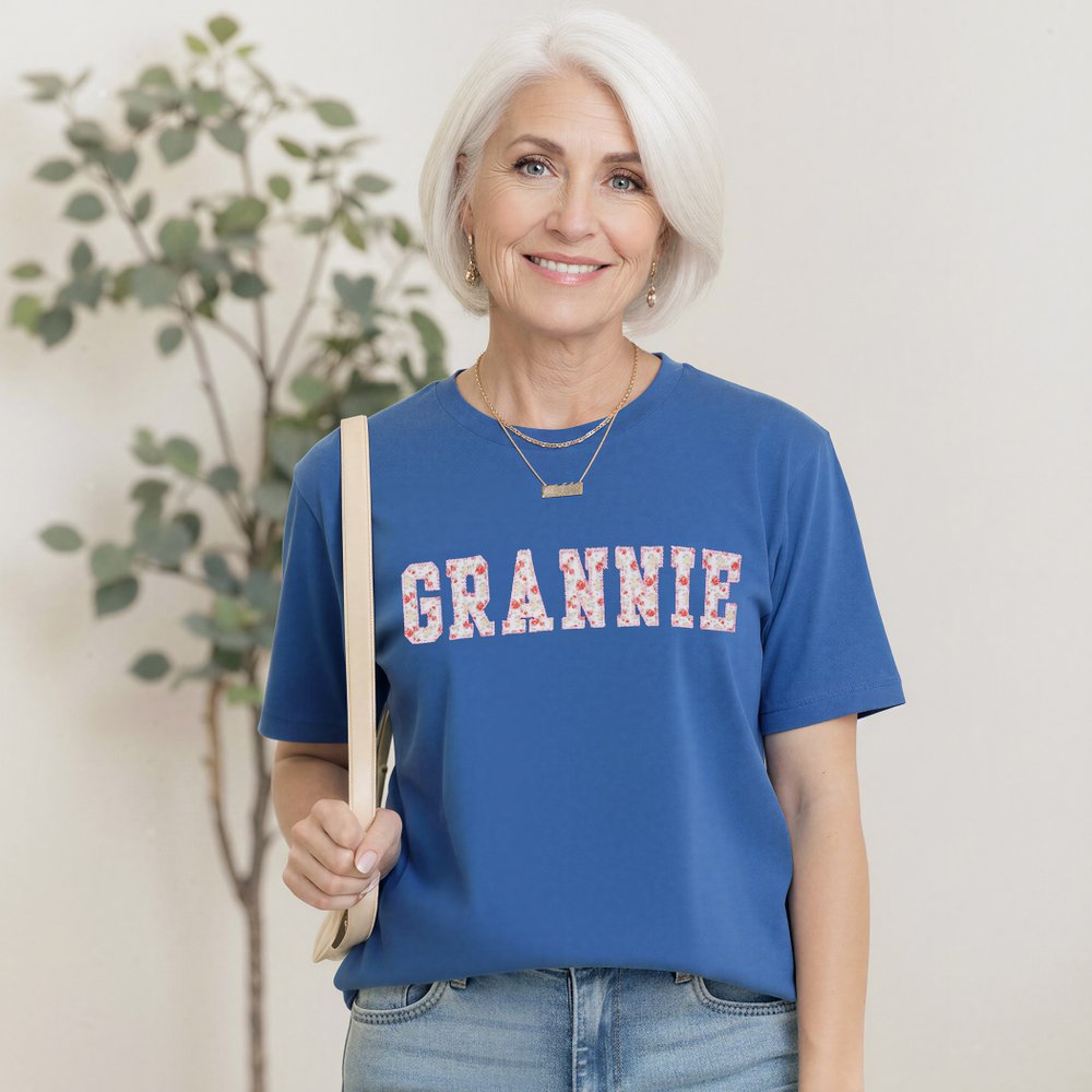 This cozy accessory features a beautiful floral patchwork and embroidered design, showcasing a cluster of flowers that can be personalized with a term of endearment for your grandmother. The combination of intricate patchwork and charming floral elements creates a warm and heartfelt piece that conveys love and appreciation.