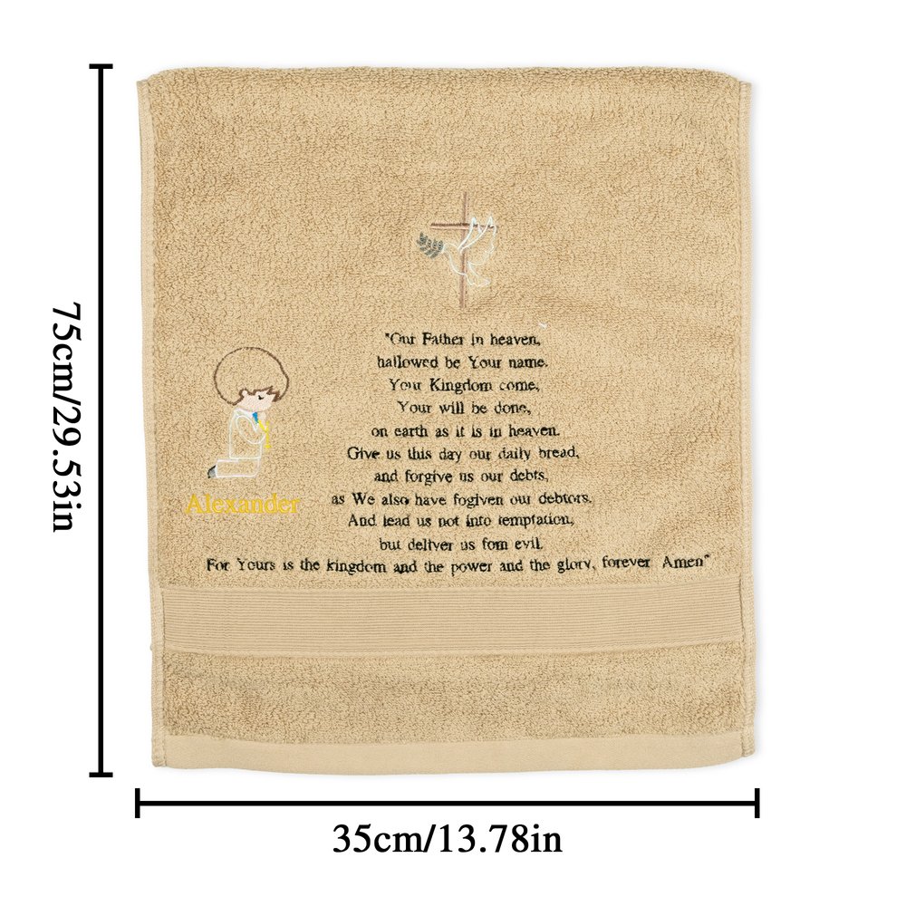 An ideal present for baptisms, First Communion, or as an encouraging gift for Christian friends and family. Whether marking a milestone of faith or offering daily support, this personalized towel carries your sincere blessings and thoughtful wishes for the recipient.