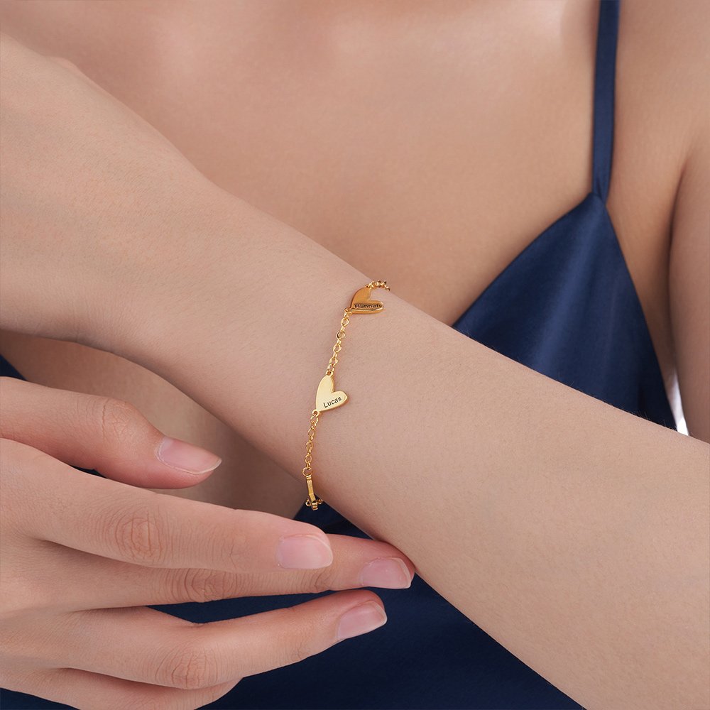 This bracelet stands out with its minimalist and exquisite heart design, symbolizing love and connection. Customize with 1-5 hearts, each engraved with a family member's name, showcasing the closeness and warmth of your family.