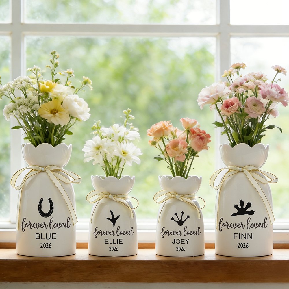 This personalized pet memorial vase is a thoughtful and comforting gift for anyone grieving the loss of a beloved pet. It is perfect for pet owners, dog lovers, or anyone who wants to honor the memory of a furry companion, offering a gentle way to keep their petβs spirit alive in daily life.