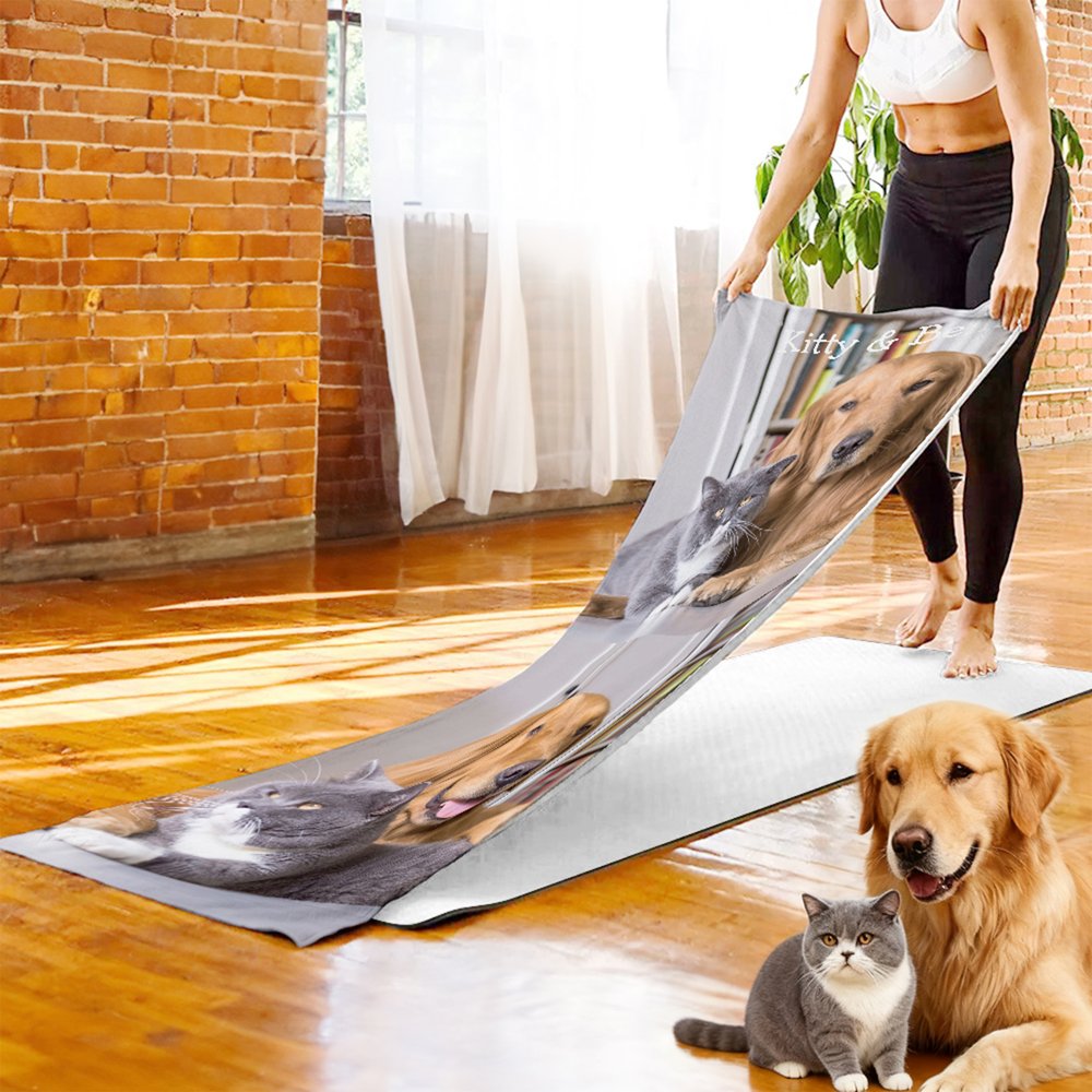 This customizable pet photo and name yoga towel is perfect for both the passionate Bikram (hot yoga) and the fluid Vinyasa (flow yoga). It's a must-have for every yoga enthusiast! Whether you're on a sunny beach or in the gym, this yoga towel adds a touch of unique style to your activities.