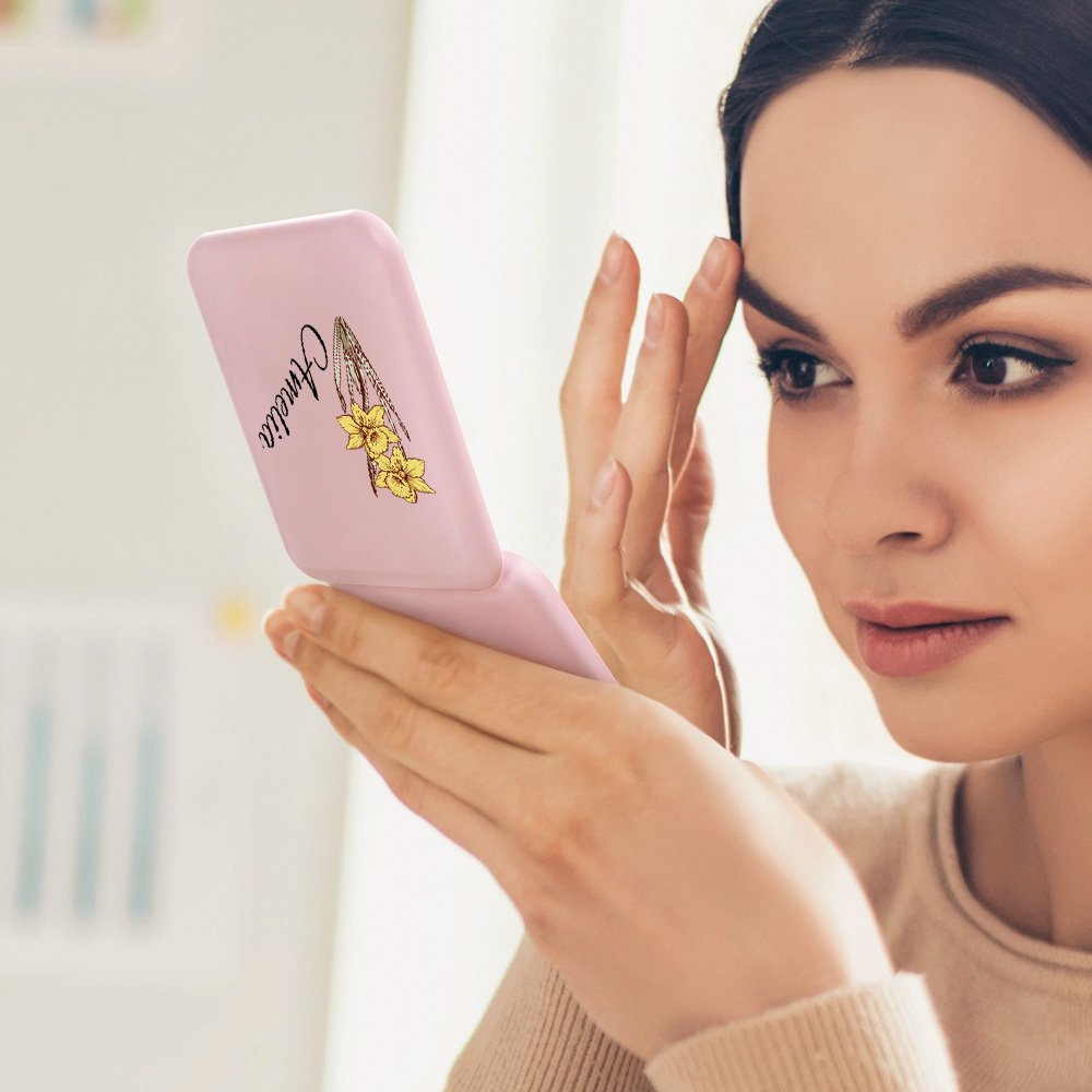 This personalized portable birth flower double-sided makeup mirror offers customization options for a name and a birth flower, allowing you to create a one-of-a-kind accessory. Select from four chic colors to perfectly match your personal style and preferences.
