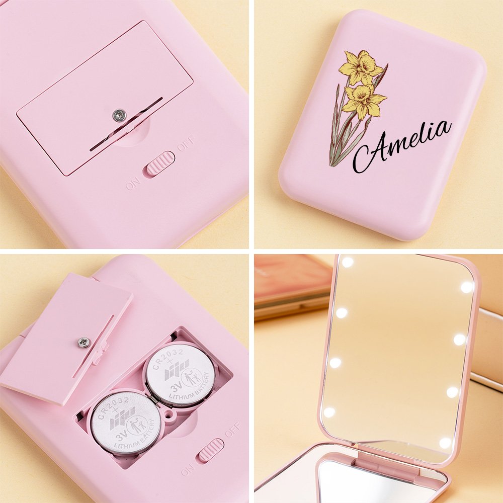 | Feature: | LED Light, Double-Sided Mirror with One Side Magnifying Effect, Birth Flower |