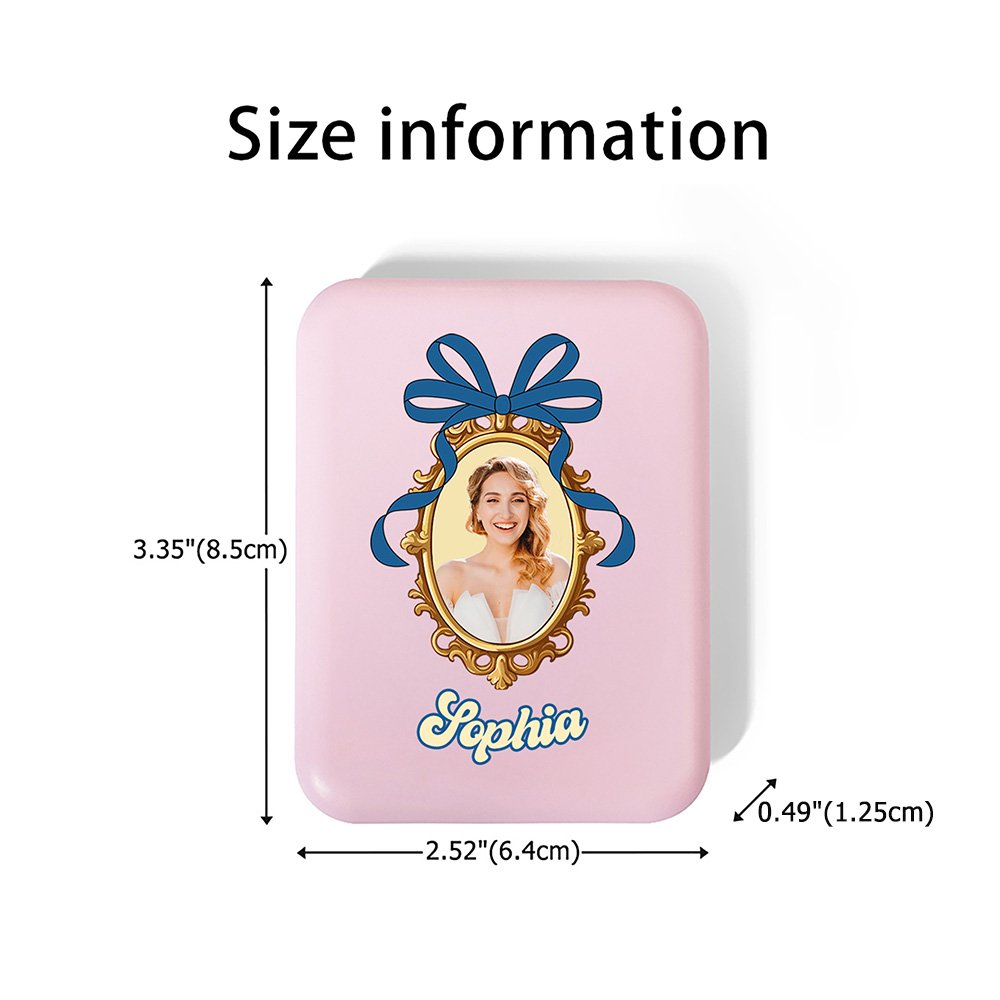 Personalized Princess Photo Frame Pocket Makeup Mirror with Name and LED Mirror Travel Essentials Birthday Gift for Women