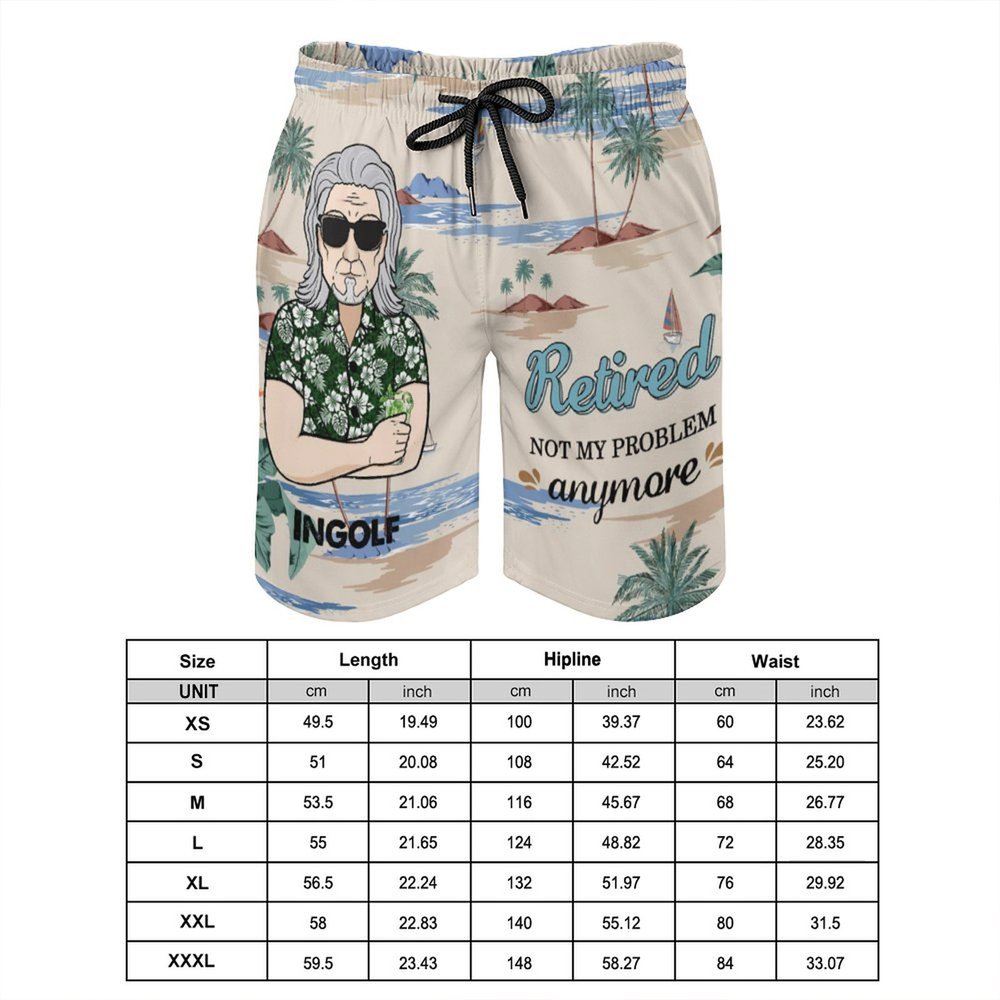 With the design background of the summer ocean beach, this pair of shorts can be customized with the casual image and name of the owner, paired with the playful slogan "retired not my problem anymore", perfectly interpreting the free and casual attitude of retirement.
