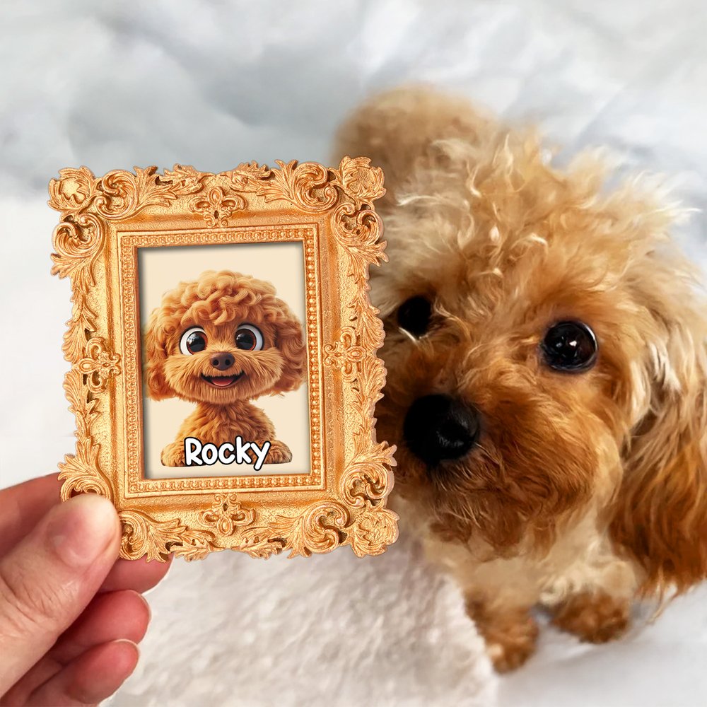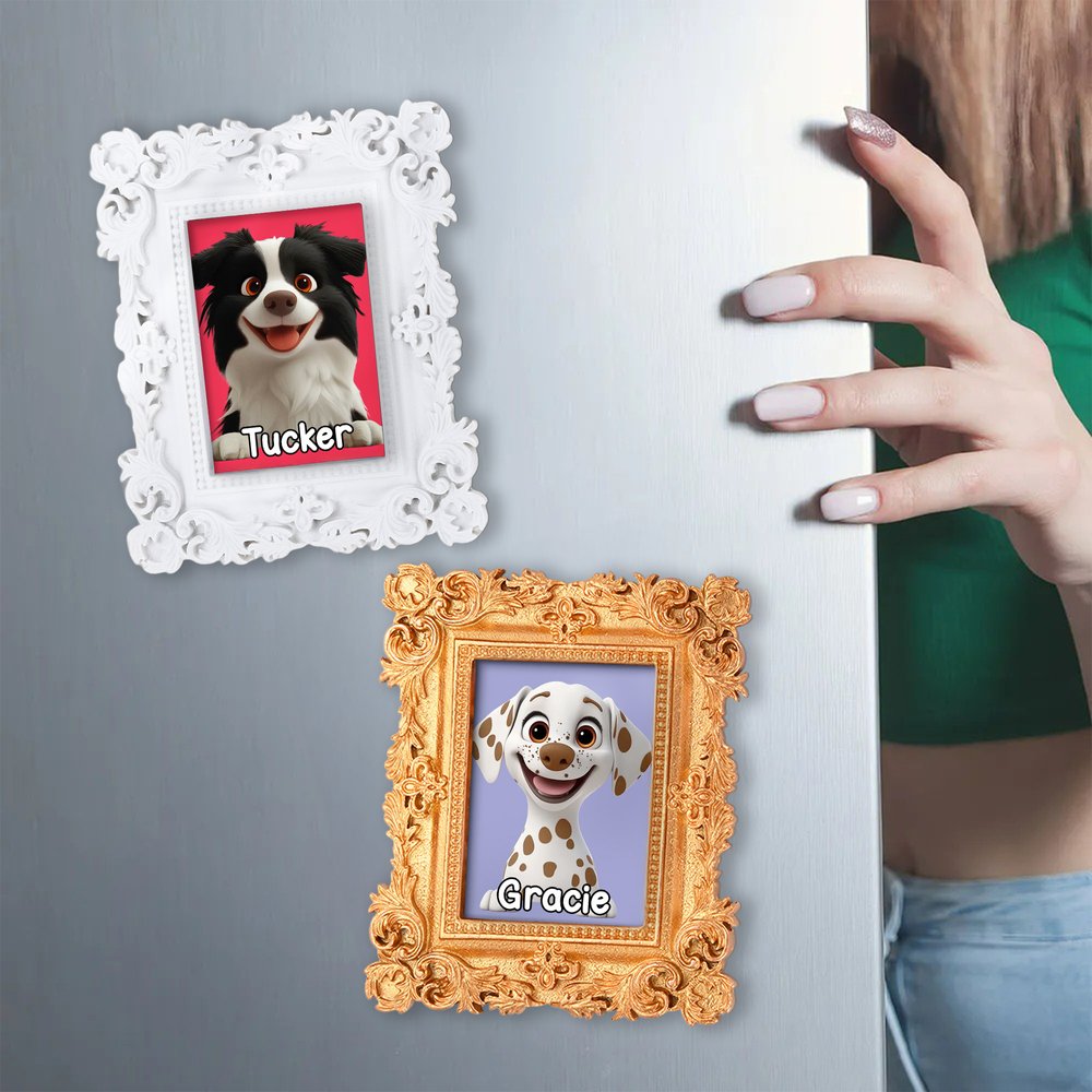 Based on a classic photo frame design, the edges are adorned with vintage carved patterns, and the center features a cute cartoon dog image. You can also customize the name, with multiple color options available. The overall style combines a nostalgic atmosphere with a cute and playful feel, making the fridge magnet not only a home decoration but also a warm and heartfelt way to showcase your beloved pet and carry your emotions, infusing the space with a retro and soothing vibe.