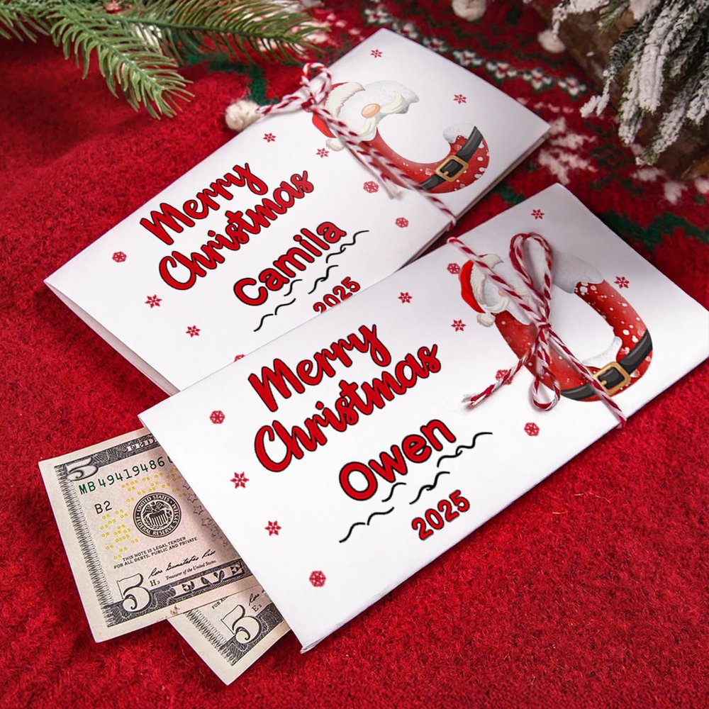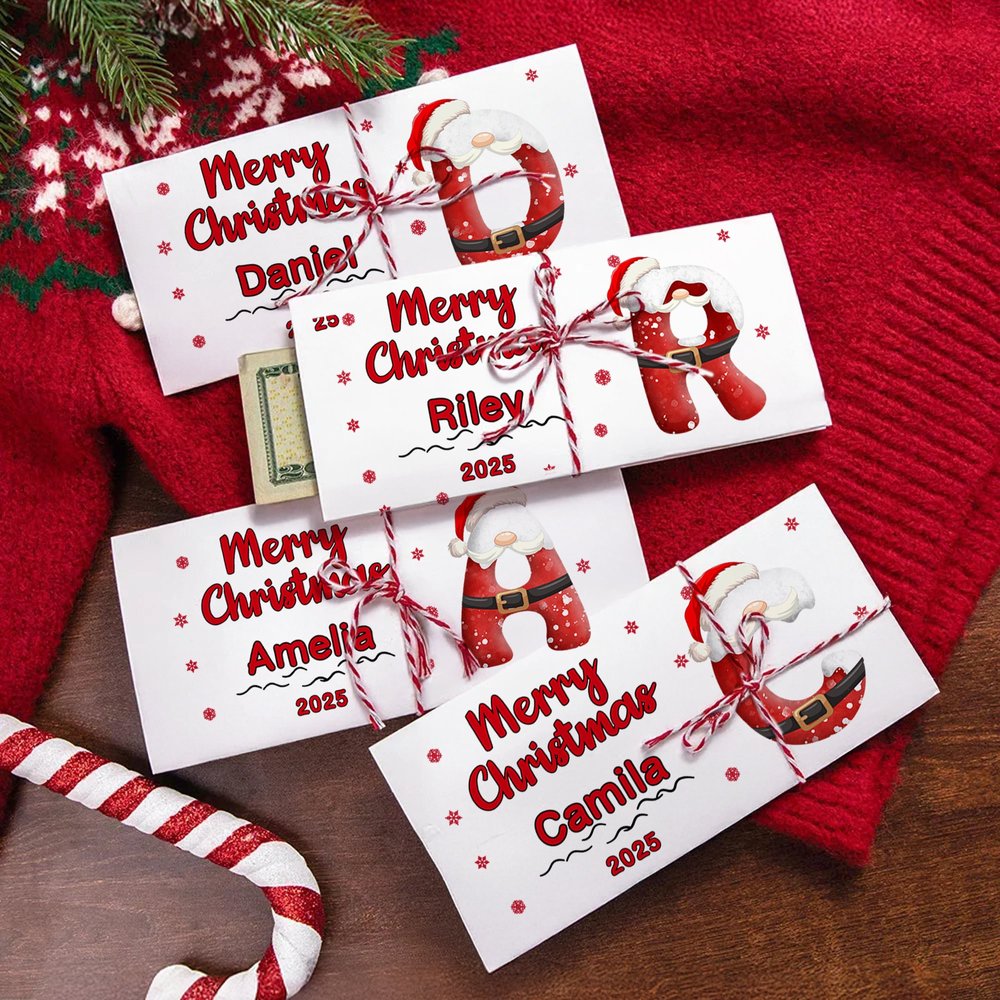 This personalized card wallet features a unique design with Santa Claus's initial and snowflake patterns, along with the text "Merry Christmas," creating a joyful, festive atmosphere. Additionally, you can freely customize your name and the year information on the envelope, making each gift warm and filled with the joy of the holiday.