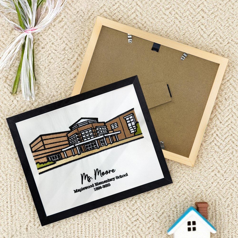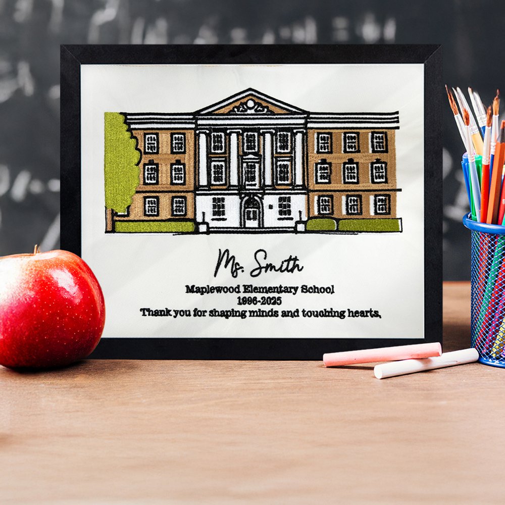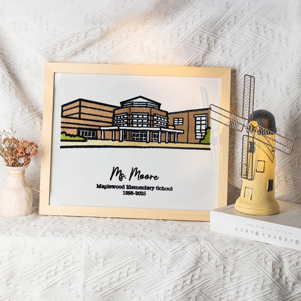 Our embroidered artwork beautifully brings photos of school buildings to life with intricate threadwork. The unique design captures the essence of educational memories, and the delicate stitching not only showcases artistry but also evokes nostalgia for teachers' years spent in the classroom.
