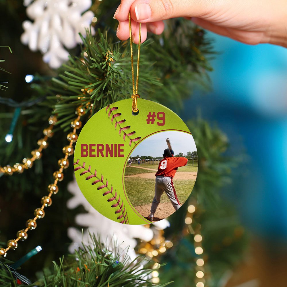 This ornament features a realistic baseball and softball design, showcasing the passion and energy of the sport. You can choose your preferred ball type, upload your photo, and personalize it with names and numbers, creating a unique ornament that allows you to hit a home run this Christmas.