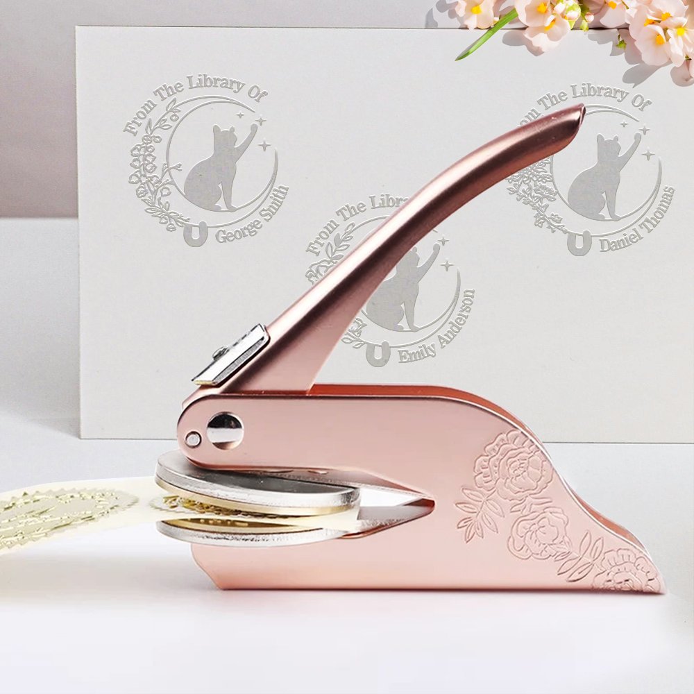 This embosser stamp is not just for books, but for any item you want to leave your mark on. Use it to emboss your name or logo on envelopes, journals, letters, certificates, and more. It's a versatile tool that adds a touch of elegance and professionalism to every piece of correspondence. From personal libraries to professional offices, this stamp is a must-have for any book lover or writer who values uniqueness and style.
