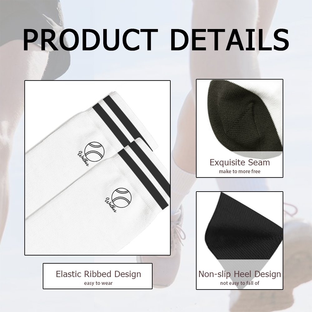 This pair of socks features tennis patterns printed on both the left and right outer sides, showcasing endless vitality and passion for sports. You can also customize your name on the socks, making these mid-calf socks a truly personalized fashion item.