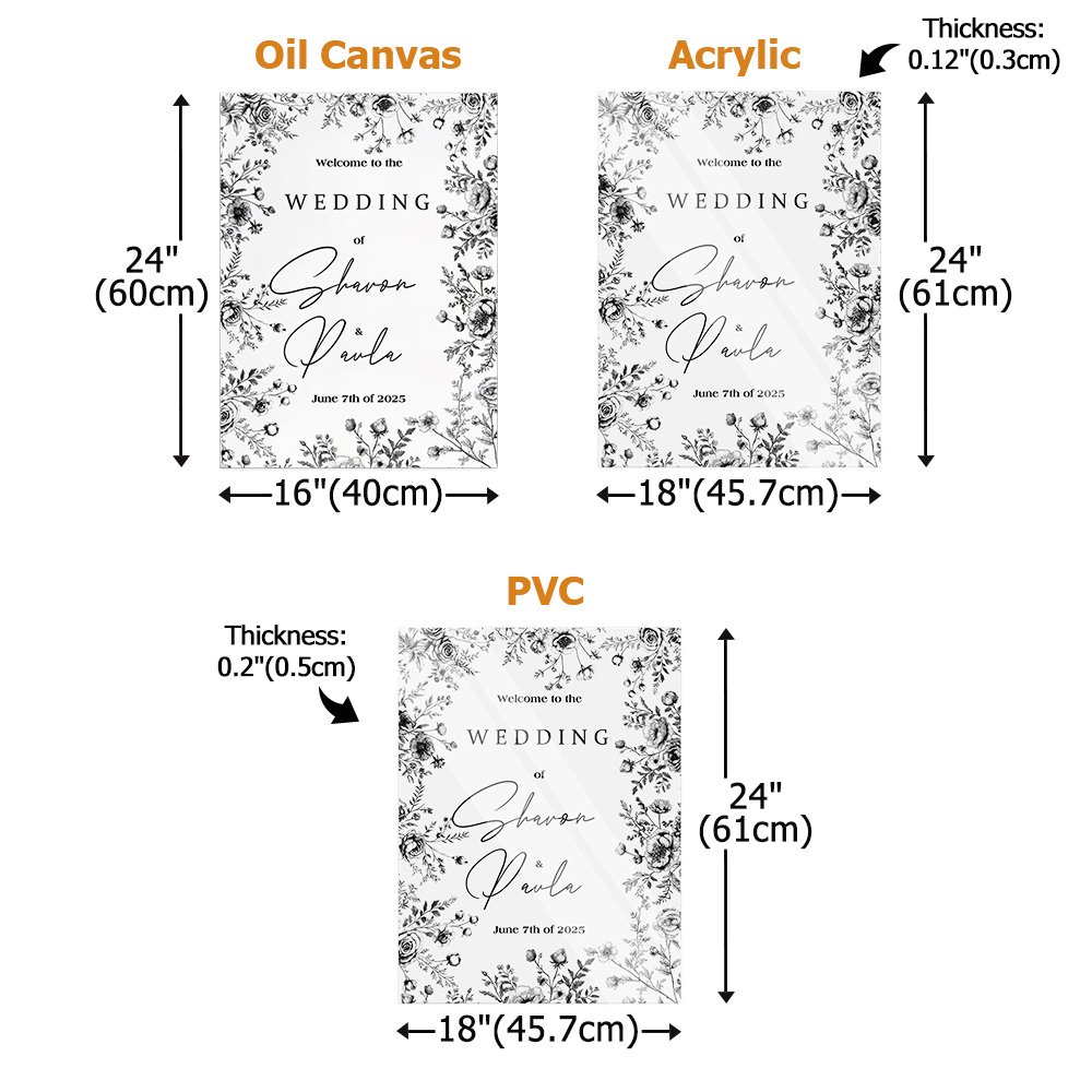 Choose from various materials, including transparent acrylic, PVC, or canvas, to best suit your wedding theme. Each option offers durability and a stylish finish, ensuring your welcome sign looks beautiful throughout the event.