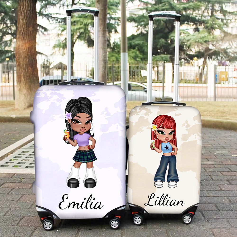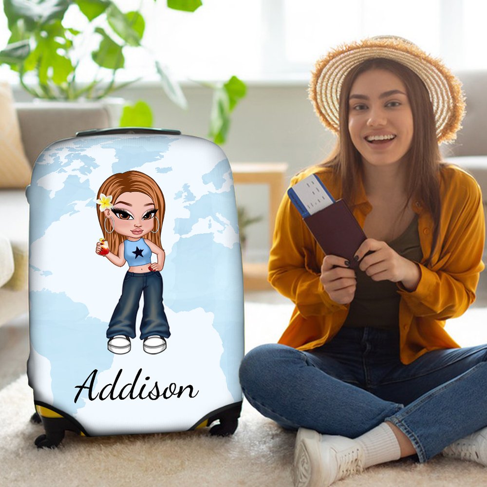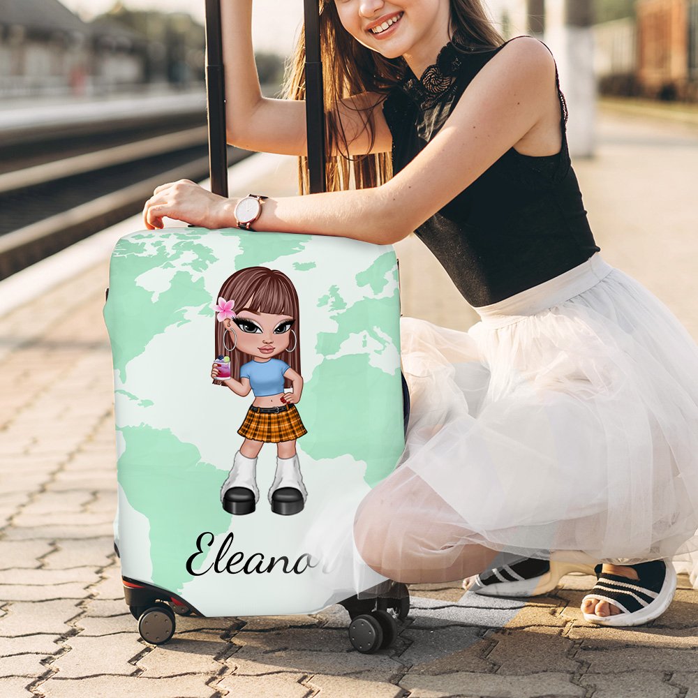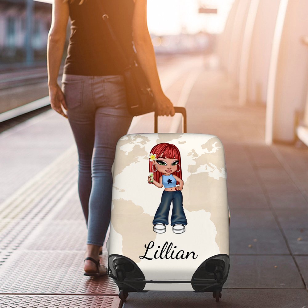 This luggage cover skillfully combines retro and modern elements, showing a unique personality charm. The Y2K-style cartoon girl character designs on each luggage cover come to life. Custom names are supported on luggage covers to create a unique souvenir.
